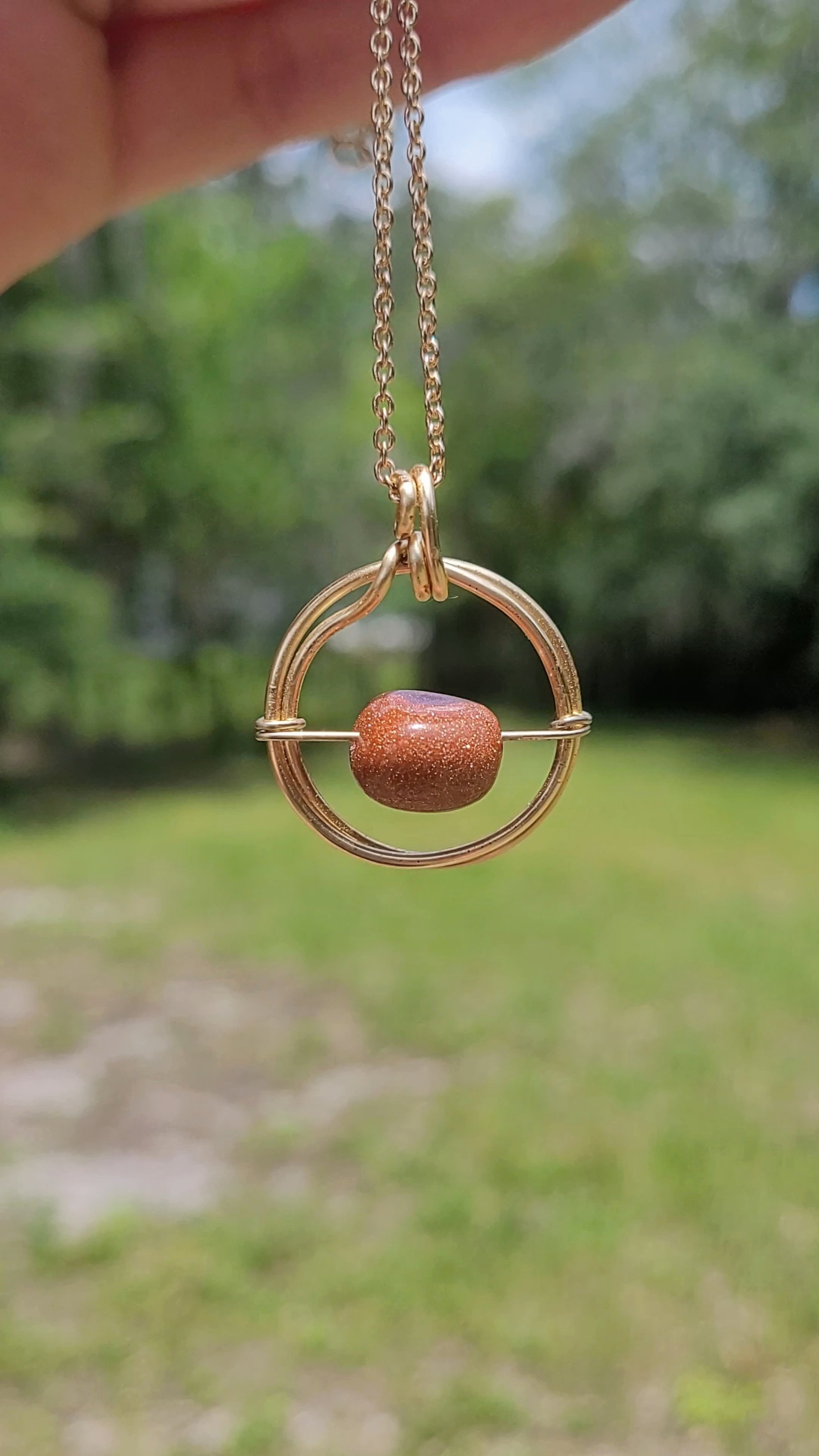 Goldstone fidget necklace, perfect for anyone with anxiety! It's wrapped with gold colored silver and the chain is gold plated silver✨️Goldstone is the stone of ambition. It builds energy, courage and a positive attitude. Revitalizes, increases drive and confidence to help obtain goals.✨