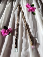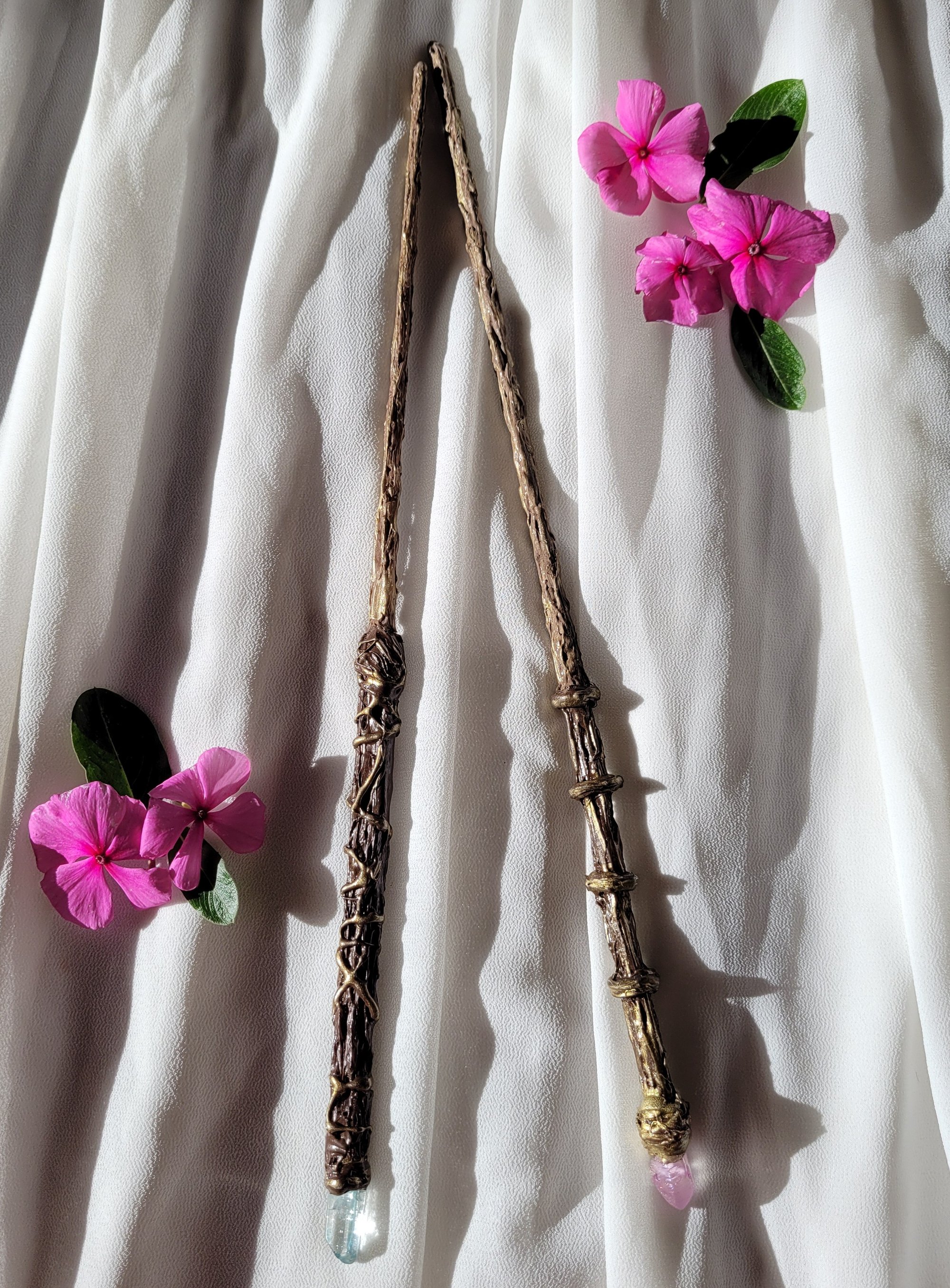 Hand crafted and painted crystal wand, embellished with either a purple aura quartz crystal or an aquamarine crystal. These can be used as Halloween decor, part of a costume or just for the witchy goddess in you. Made with a stainless steel metal rod so it wont break, also sprayed with a protective sealant. 🔮