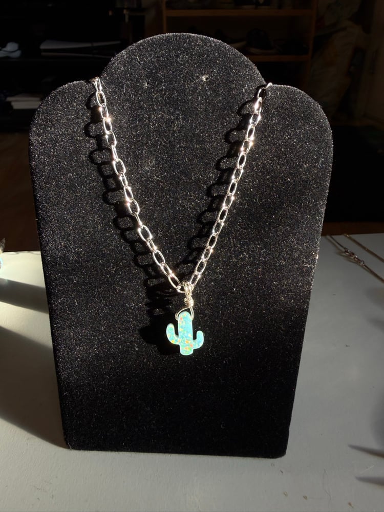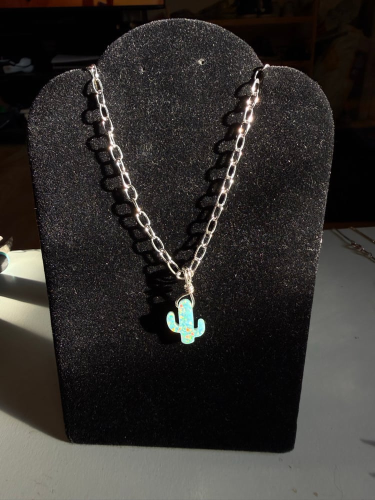 Green opal cactus on a sterling silver chain with standard clasp. 🌵